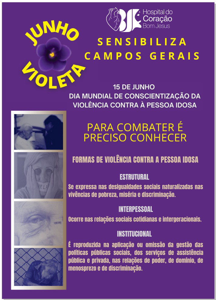 O HCorBJ em parceria com o Núcleo de Assistência Social, Jurídica e de Estudos sobre a Pessoa Idosa da Universidade Estadual de Ponta Grossa (NASJEPI UEPG) está participando da Campanha Junho Violeta - Sensibiliza Campos Gerais | Ponta Grossa contra a violência à pessoa idosa.