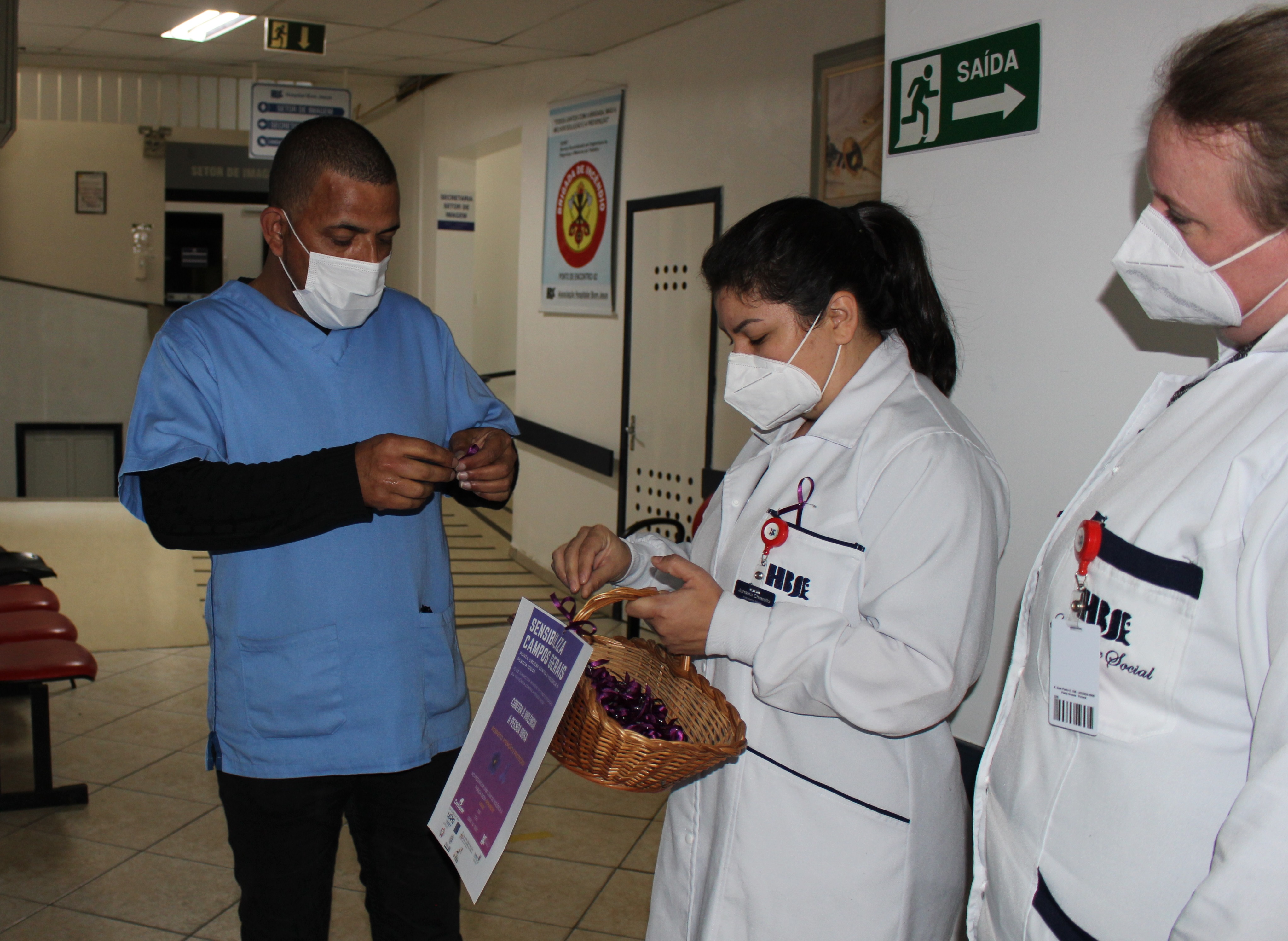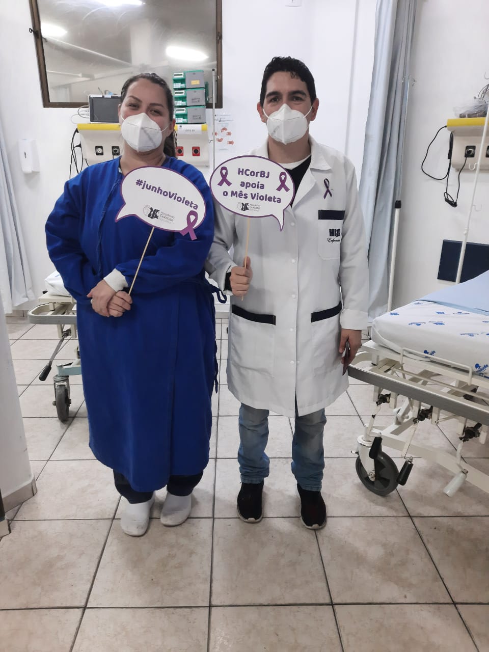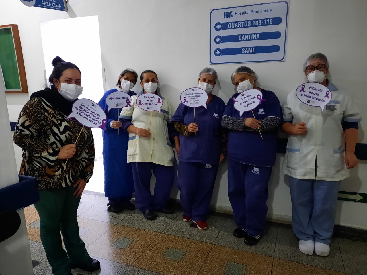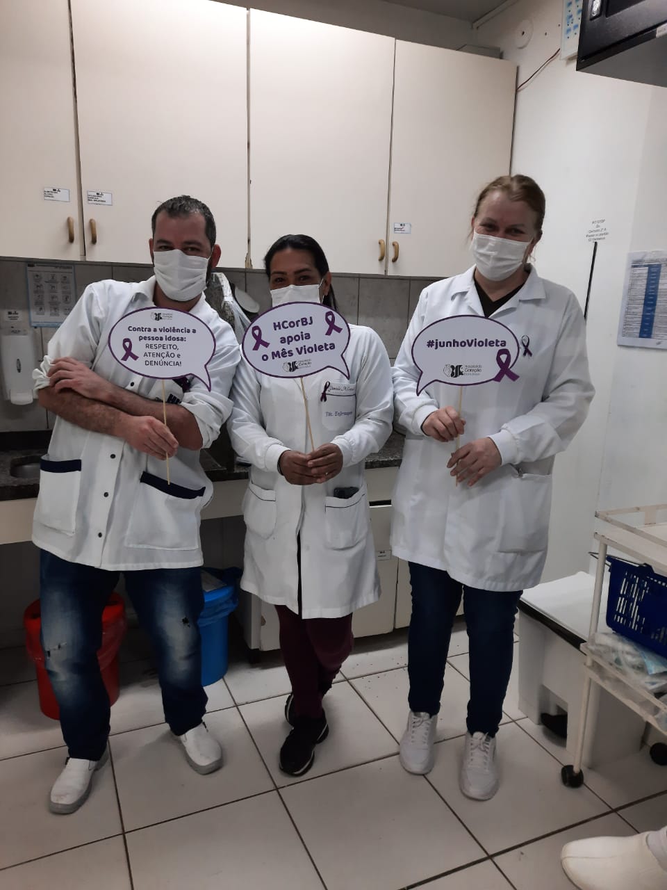 Entre elas, a entrega de lacinhos alusivos ao mês Junho Violeta aos colaboradores do HCorBJ e rodas de conversa nos setores do hospital.
