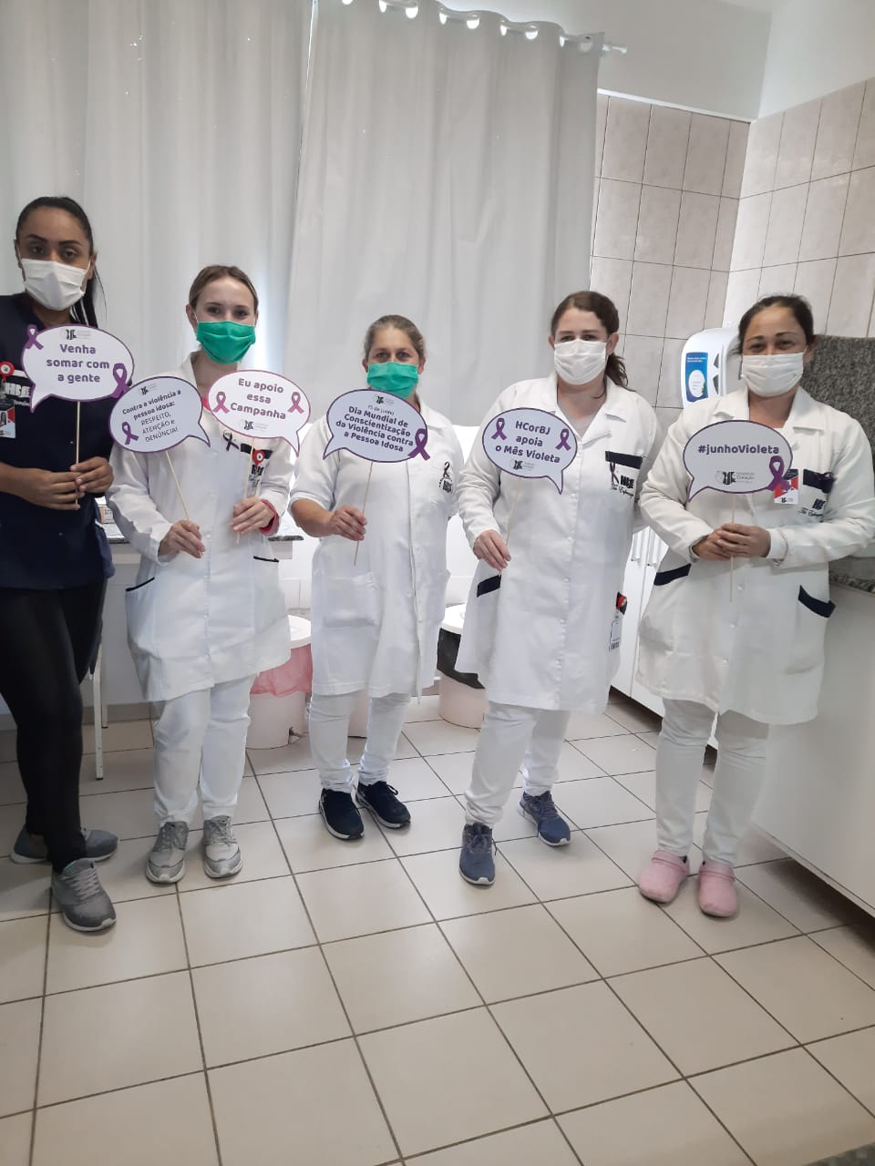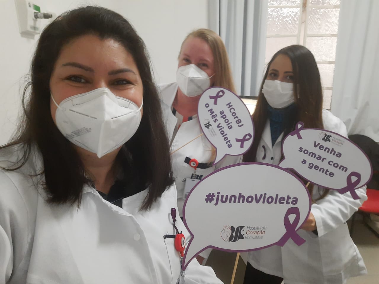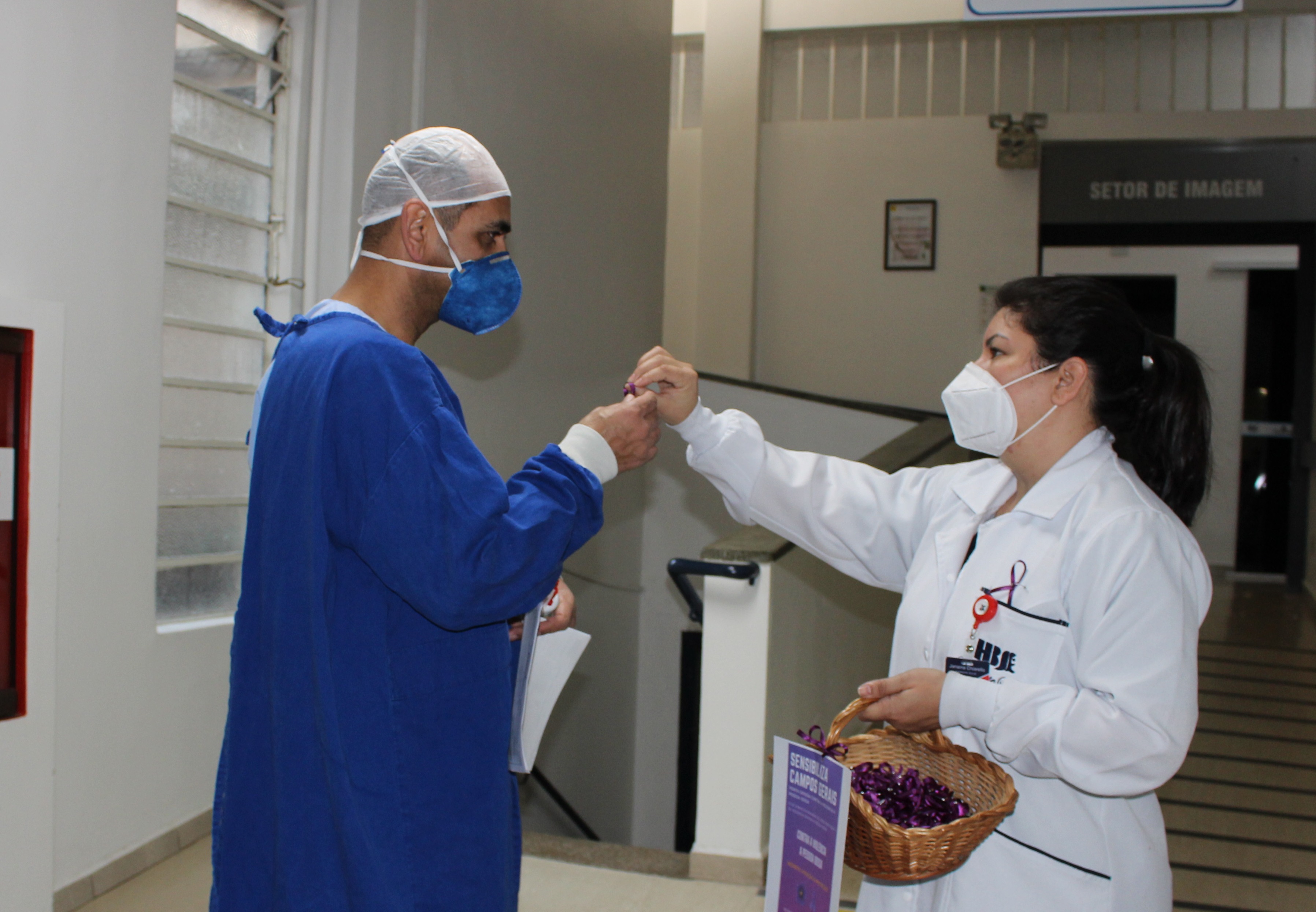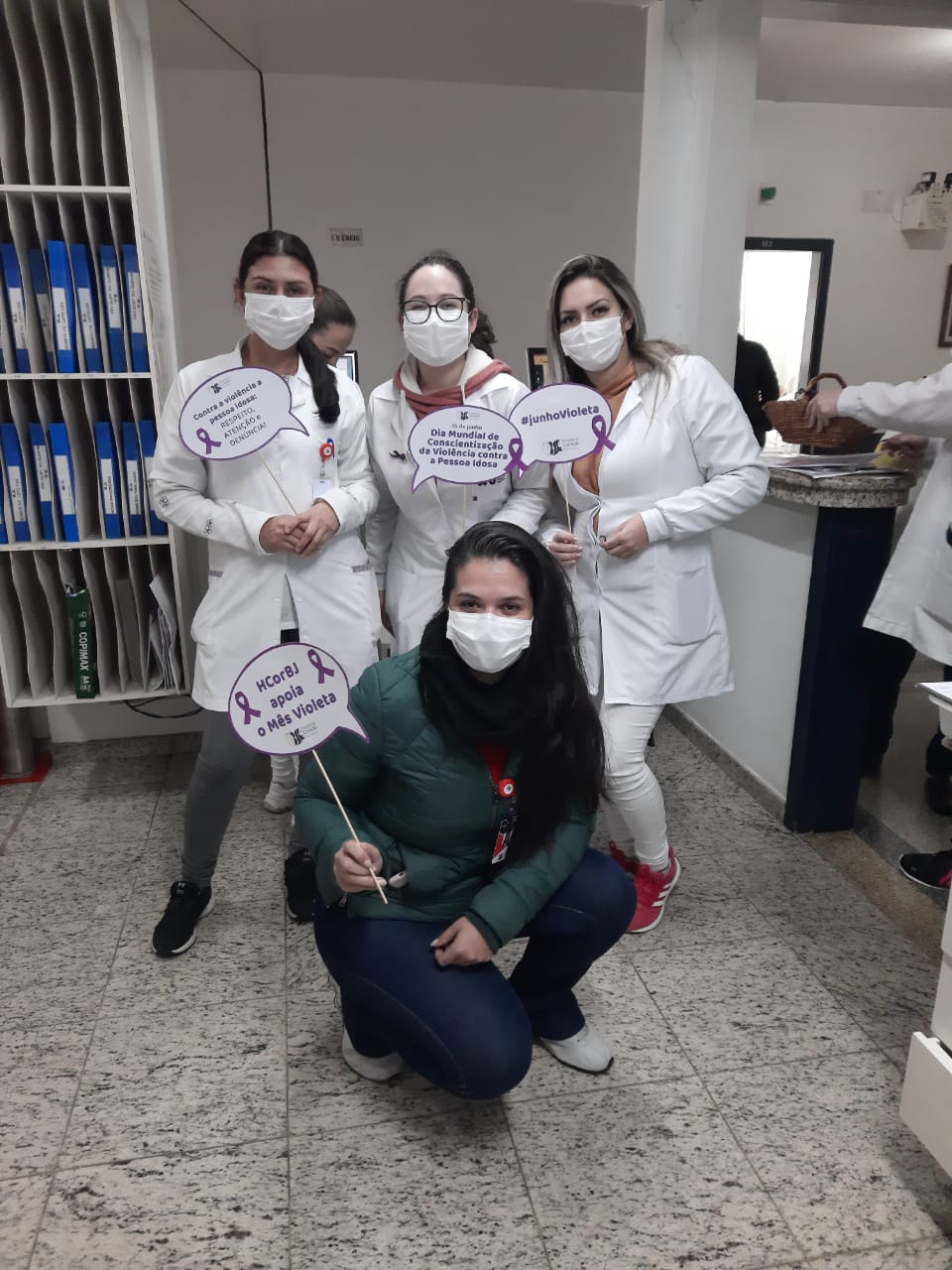 Entre elas, a entrega de lacinhos alusivos ao mês Junho Violeta aos colaboradores do HCorBJ e rodas de conversa nos setores do hospital.