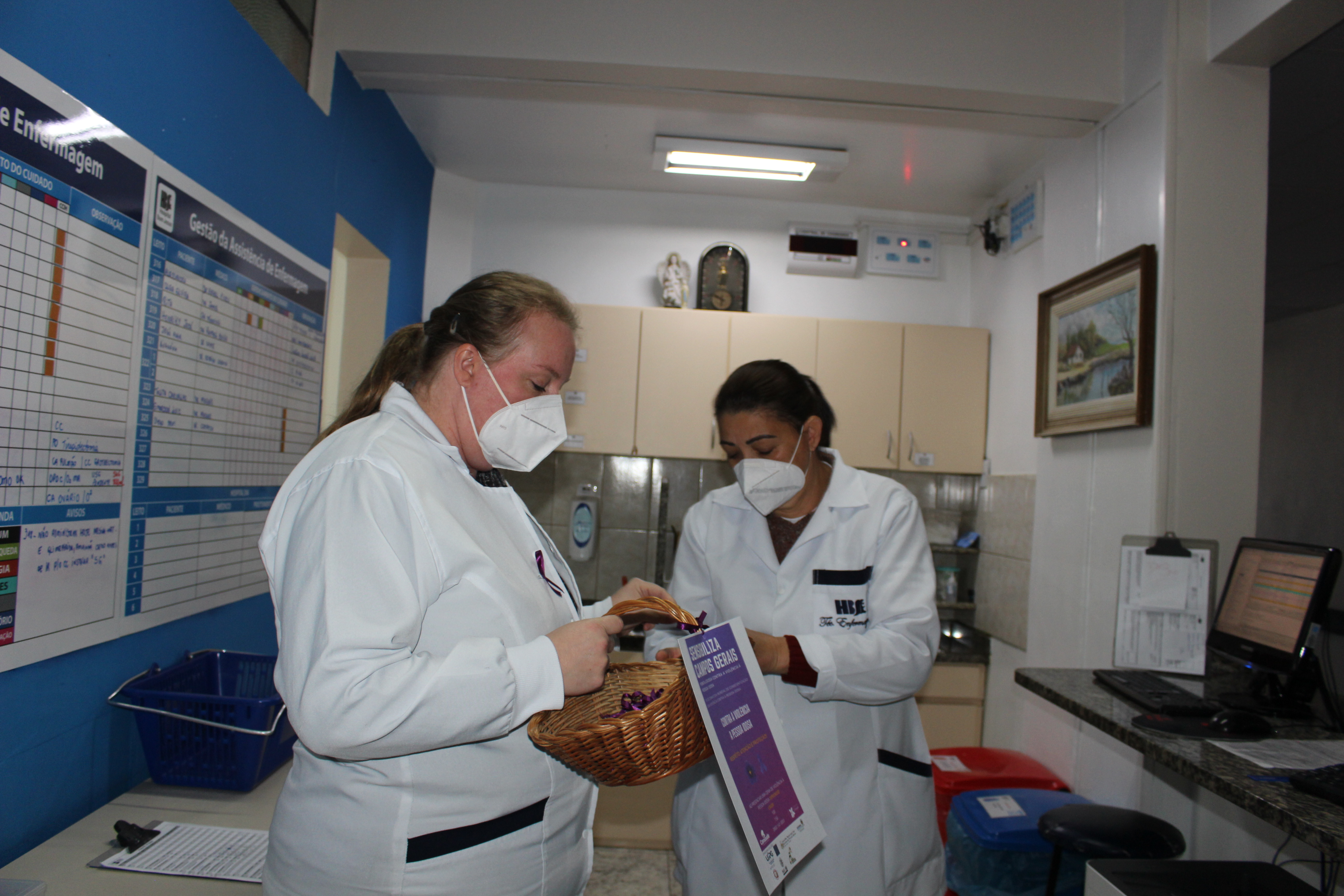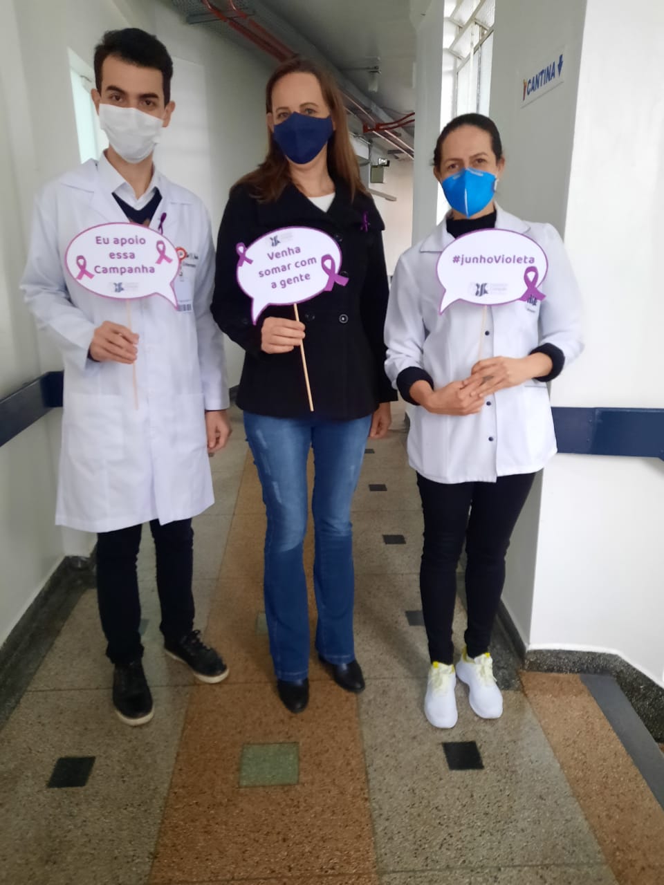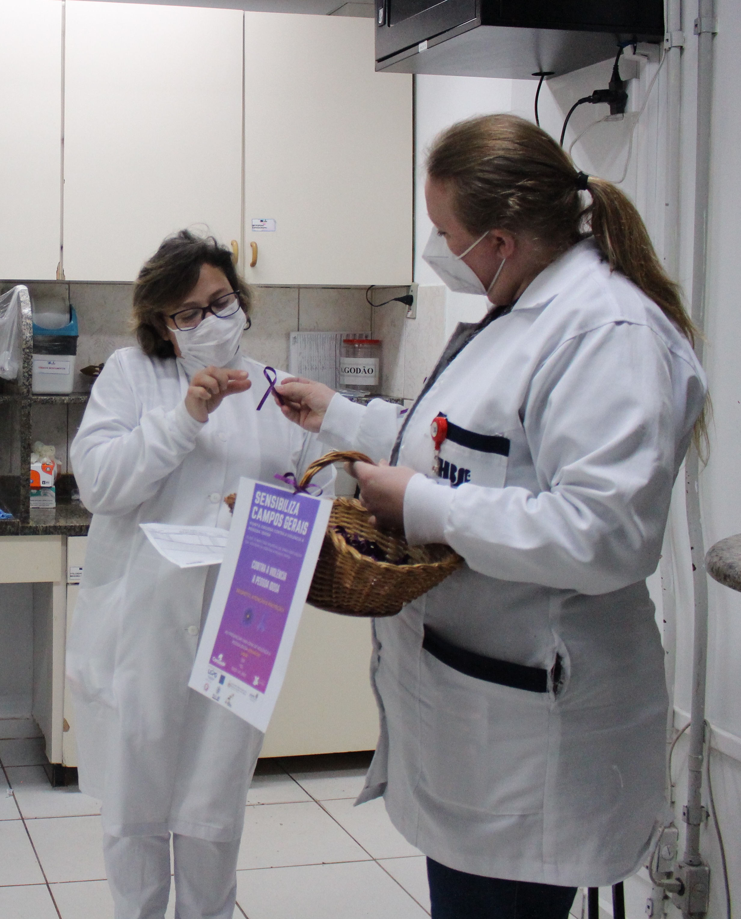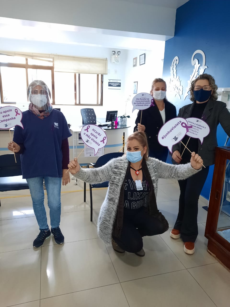Entre elas, a entrega de lacinhos alusivos ao mês Junho Violeta aos colaboradores do HCorBJ e rodas de conversa nos setores do hospital.