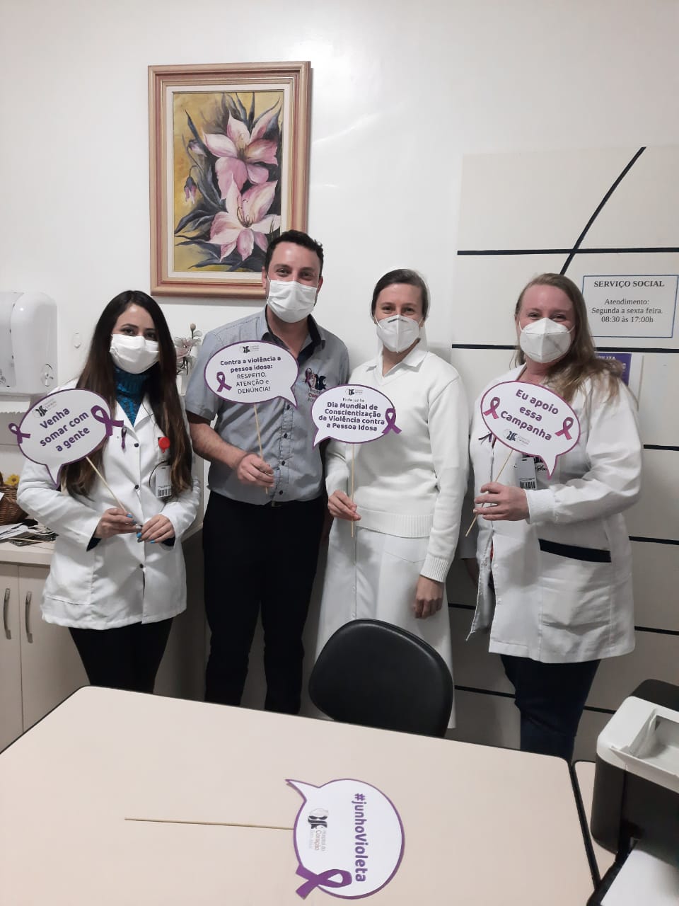 O Setor de Serviço Social do Hospital do Coração Bom Jesus (HCorBJ) em parceria com o Núcleo de Assistência Social, Jurídica e de Estudos sobre a Pessoa Idosa da Universidade Estadual de Ponta Grossa - NASJEPI UEPG - participou da Campanha Junho Violeta - Sensibiliza Campos Gerais | Ponta Grossa contra a violência à pessoa idosa.