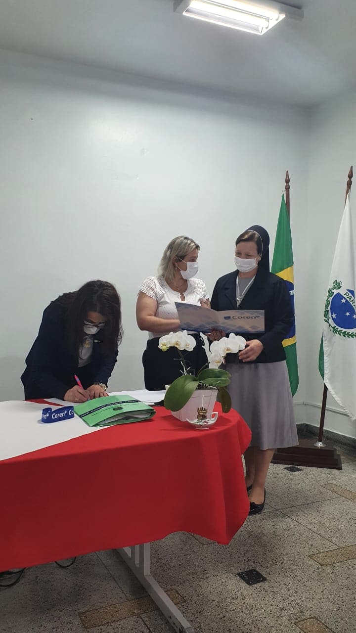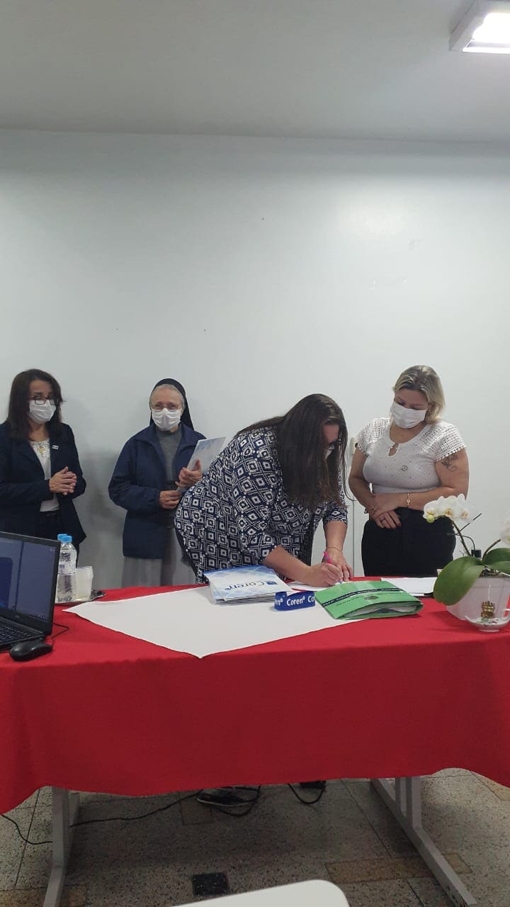 Nesta sexta-feira (02/09), a Conselheira Resi Rejane Huenermann e Conselheira e membro da Câmara Técnica de Instrumentalização das Comissões de Ética de Enfermagem, Jociandra Faustino, estiveram no HCor Bom Jesus para dar posse a nova Comissão de Ética da Enfermagem (CEE).