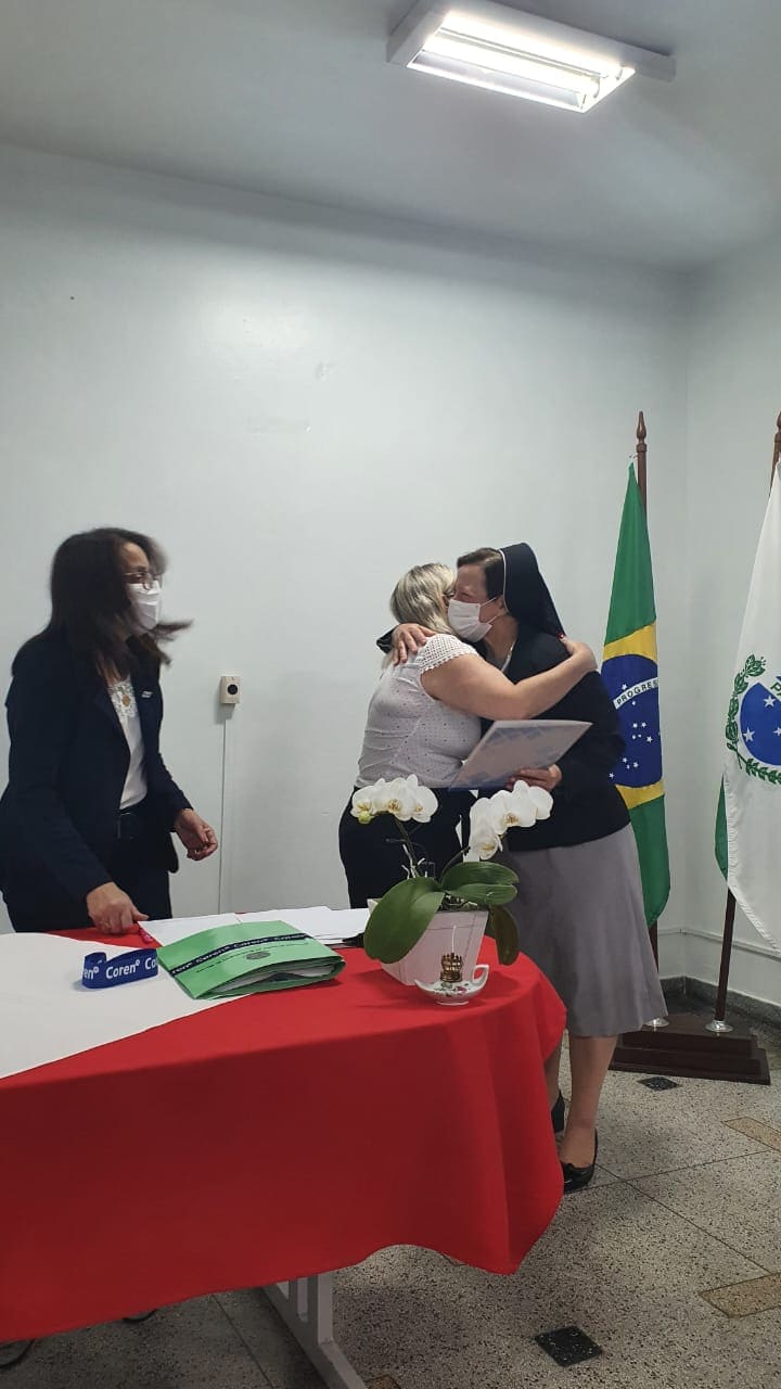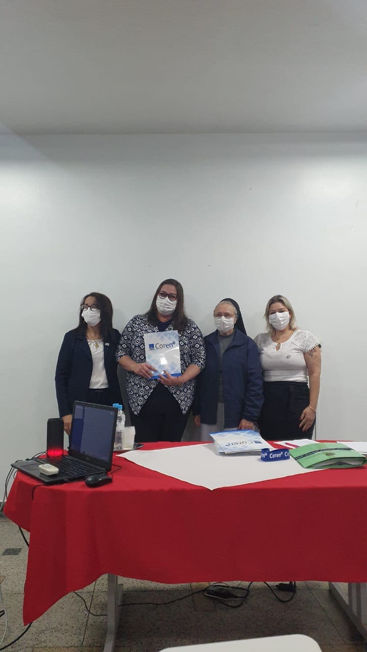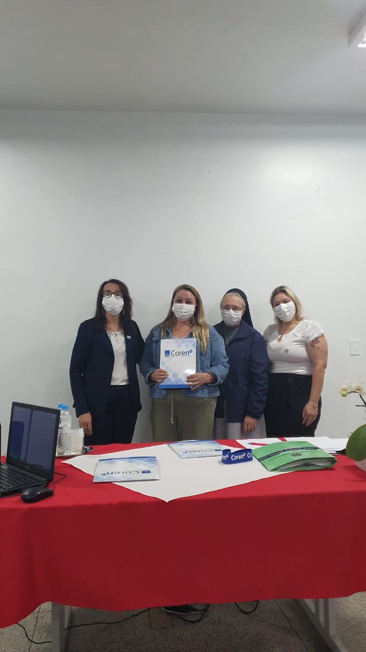 Na companhia do coordenador da Diretora vice-presidente do Irmã Margarida, do diretor administrativo Jean Carlos Teixeira Fabiano e Irmã Félia Horodenski, gerente da equipe de enfermagem, as conselheiras do Coren PR, conversaram com a equipe de enfermagem presente sobre a importância das CEEs, sua missão e suas atribuições dentro da instituição.