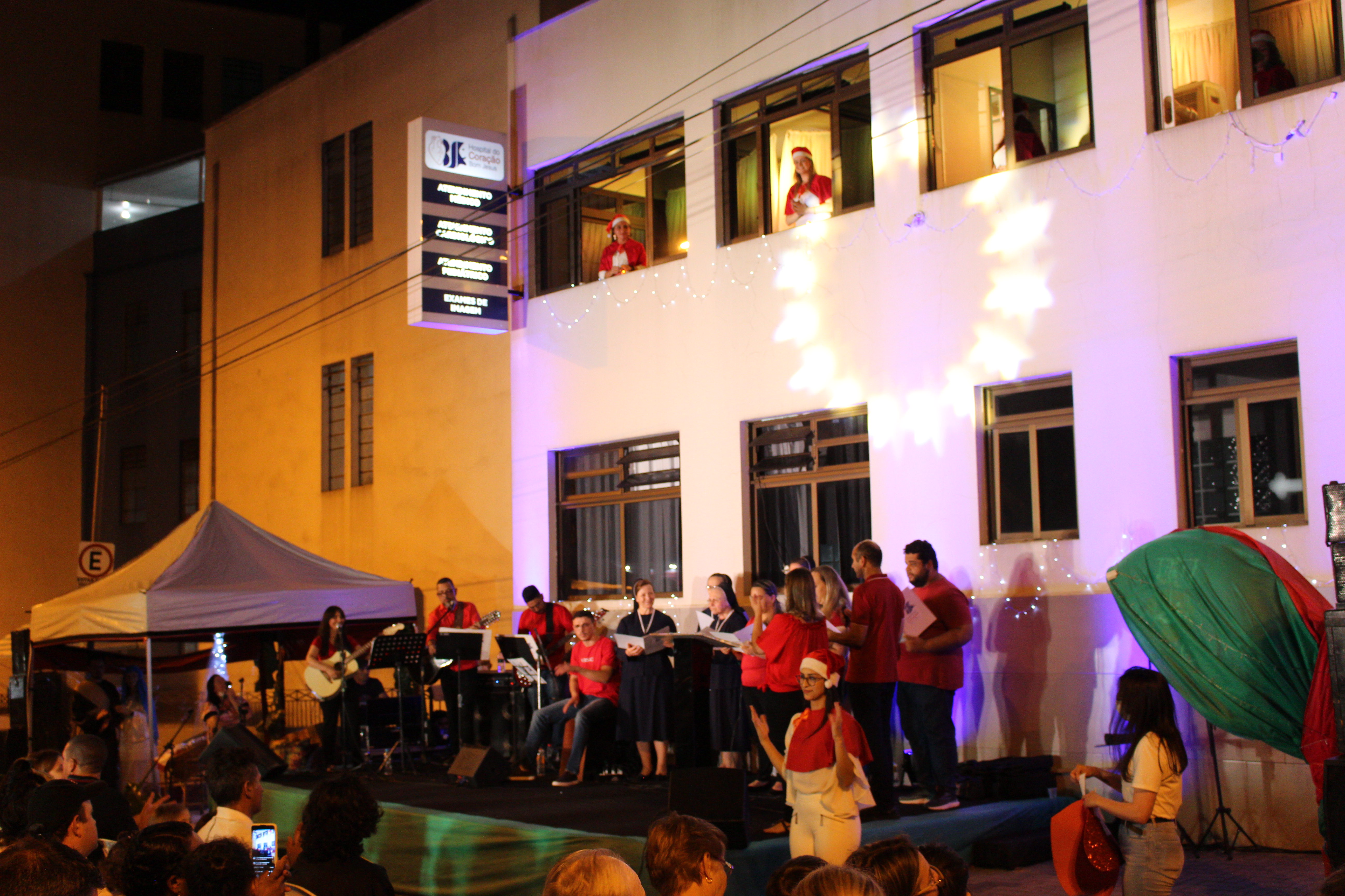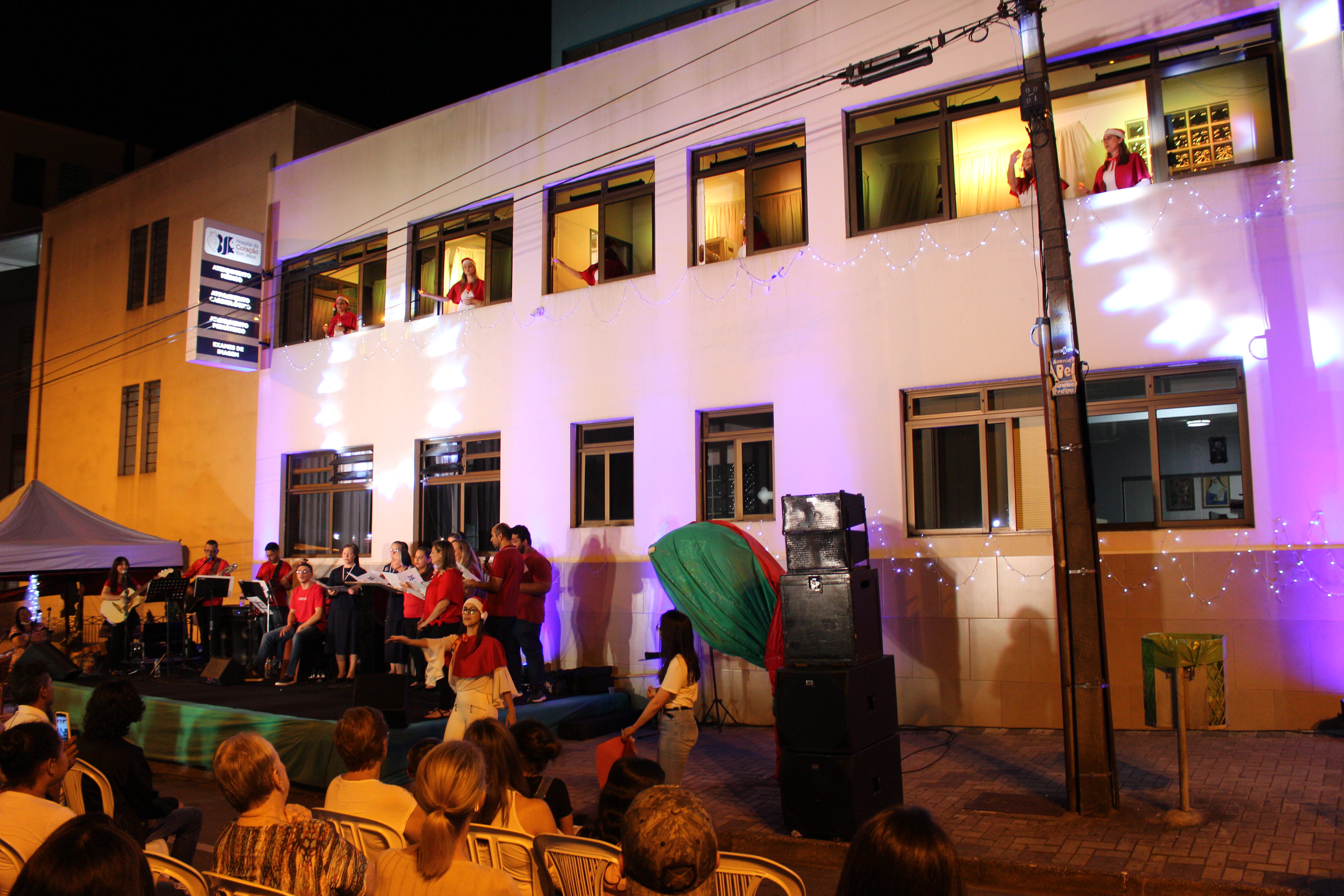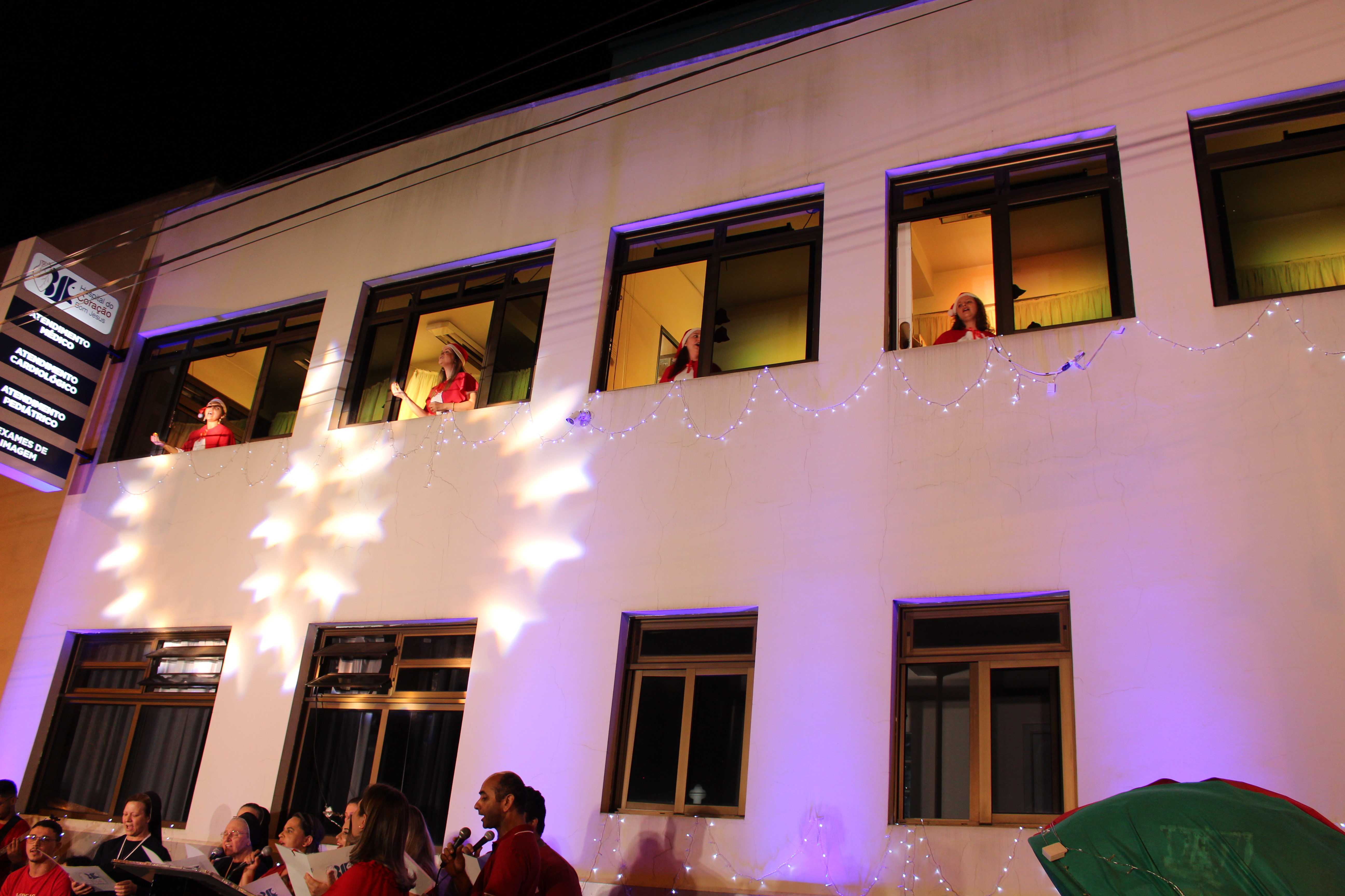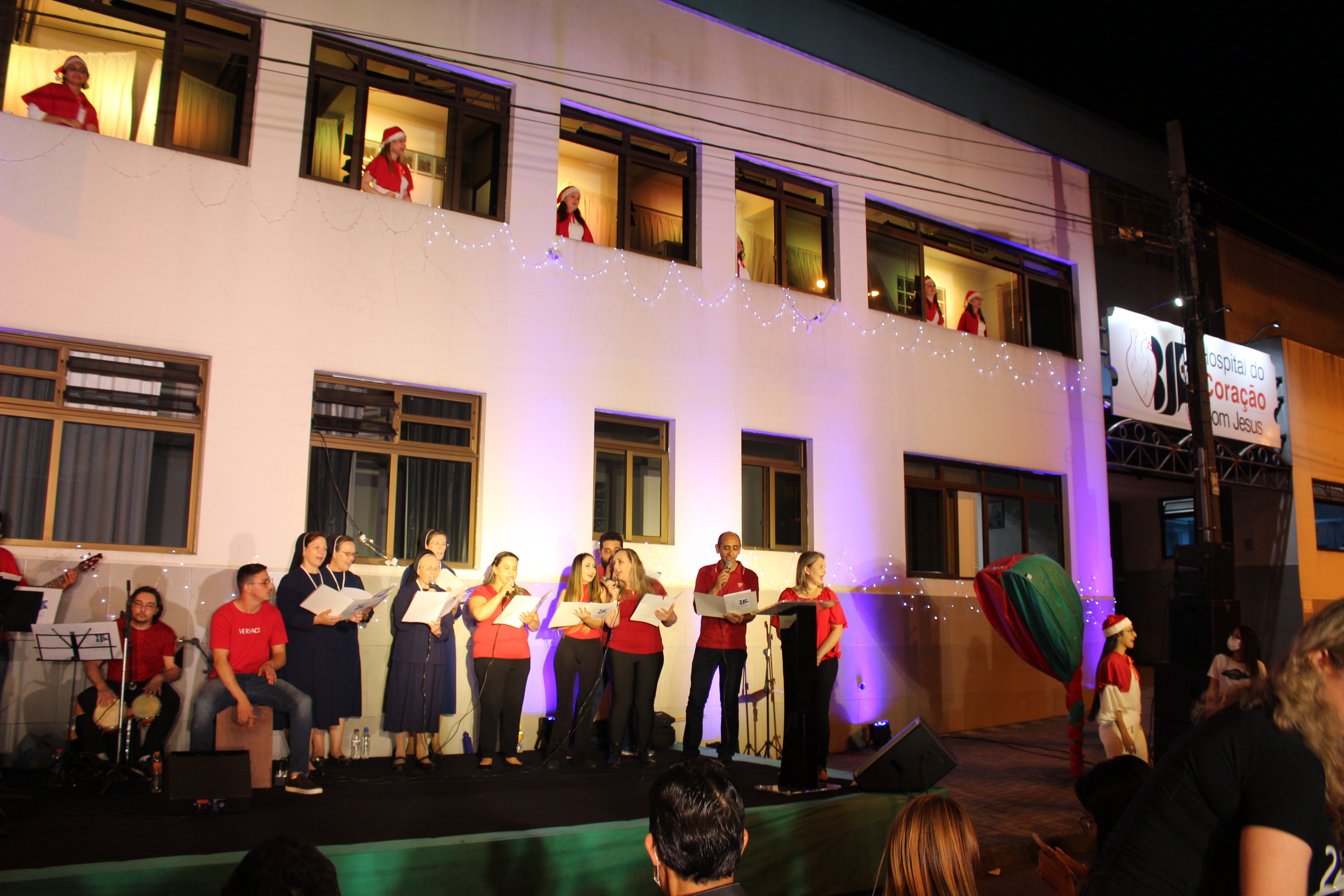 A apresentação Vozes do Coração foi realizada dia 15 de dezembro, com início às 20h, os colaboradores estavam na fachada principal do HCor Bom Jesus.