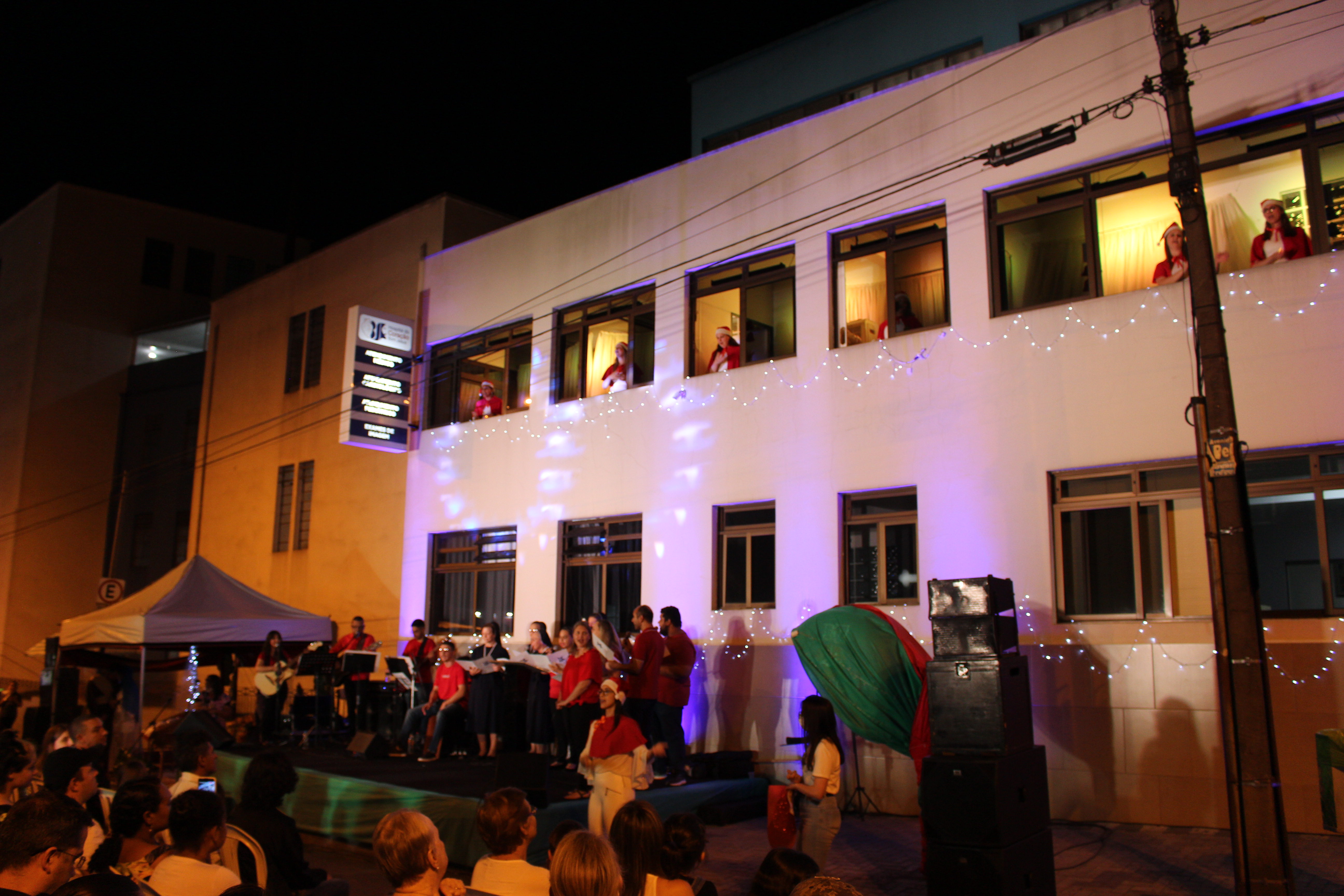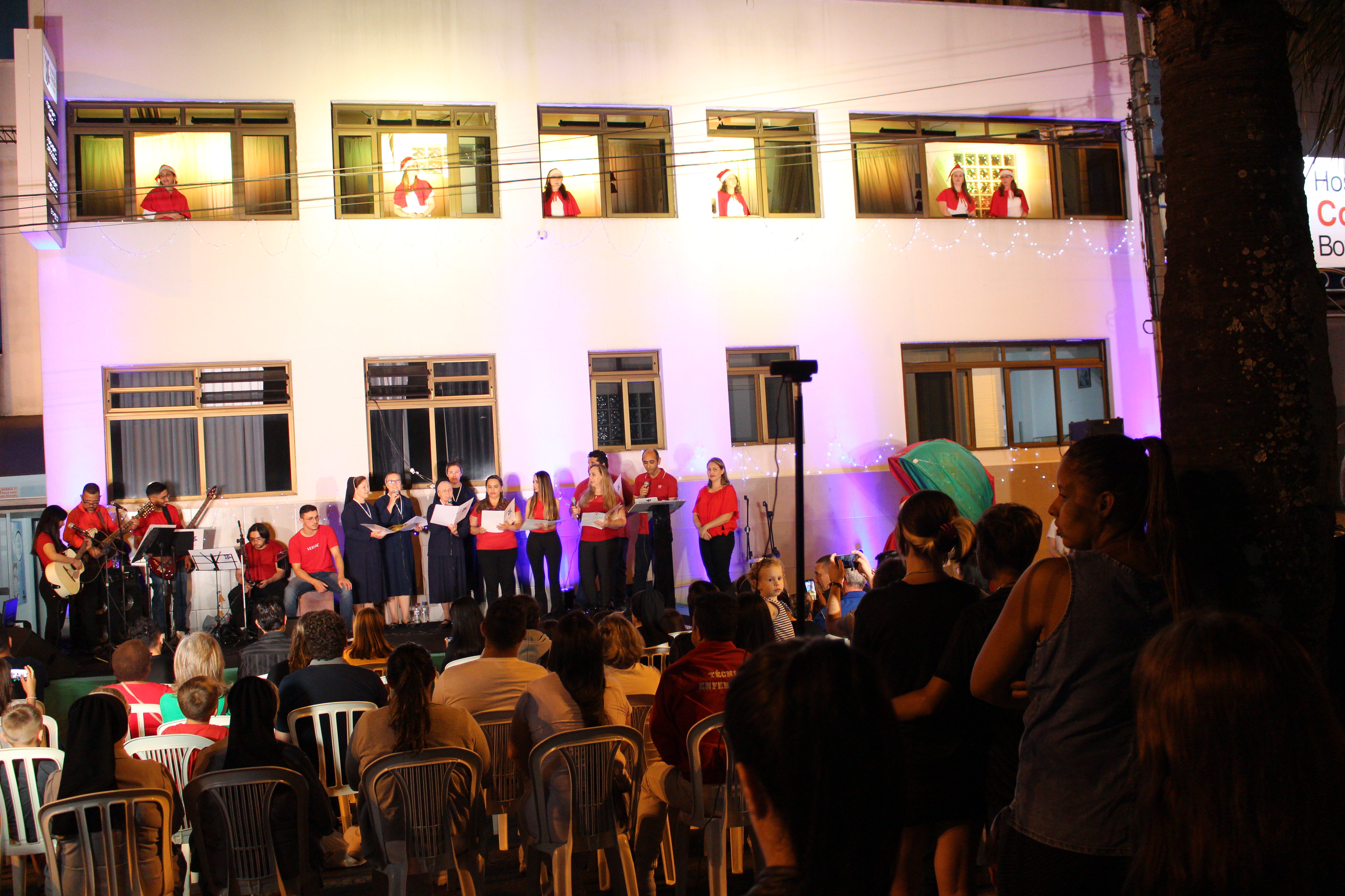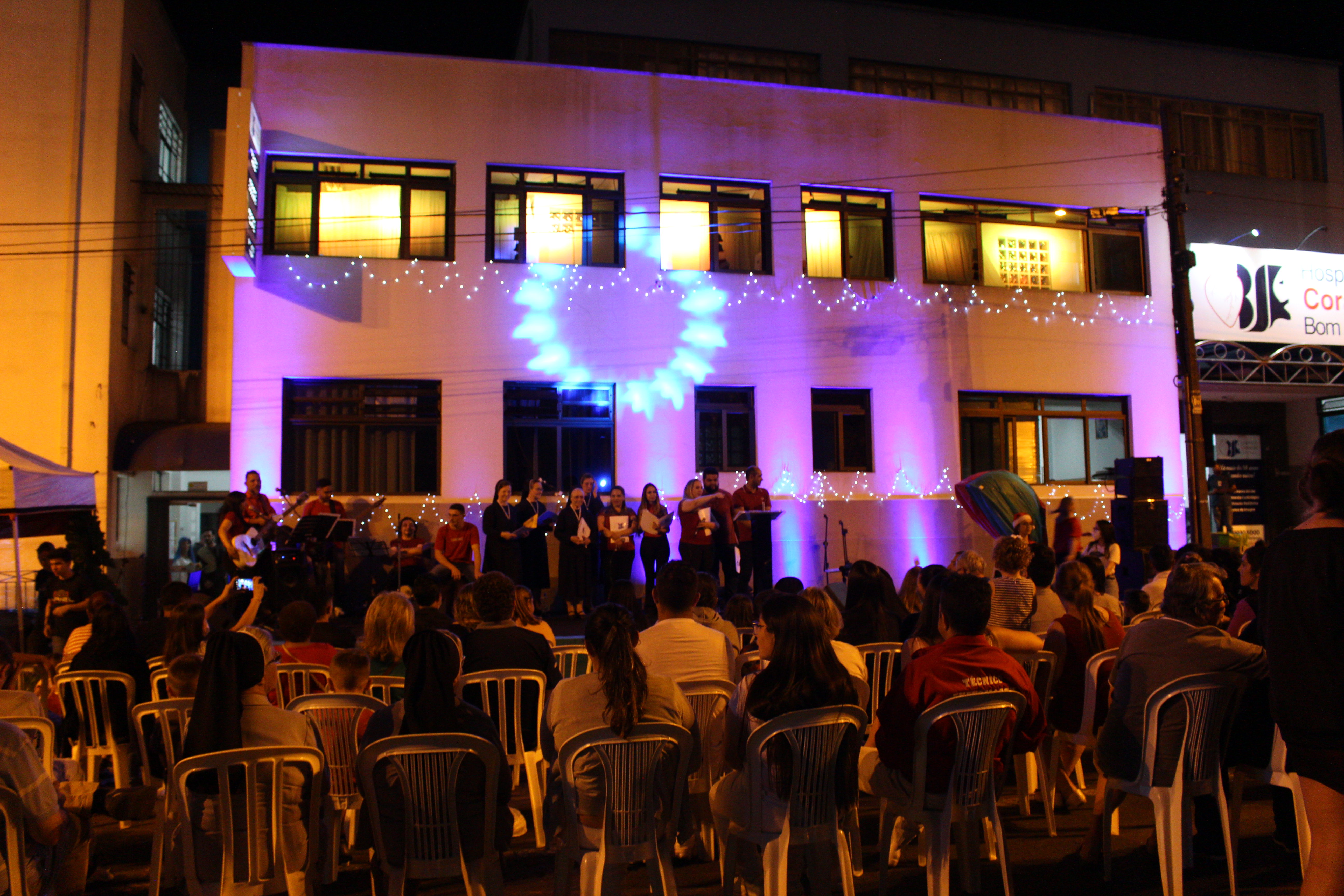 A apresentação Vozes do Coração foi realizada dia 15 de dezembro, com início às 20h, os colaboradores estavam na fachada principal do HCor Bom Jesus.