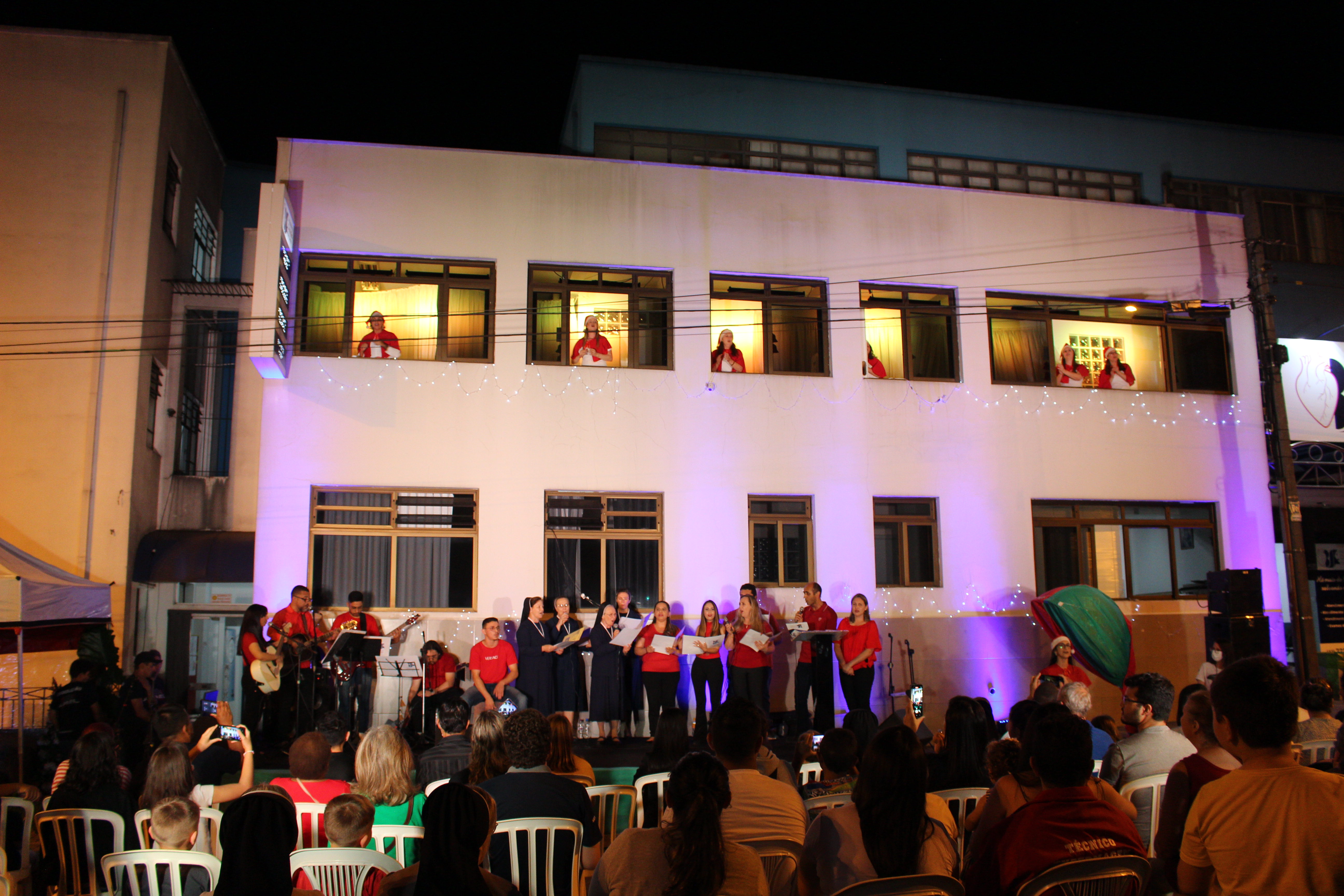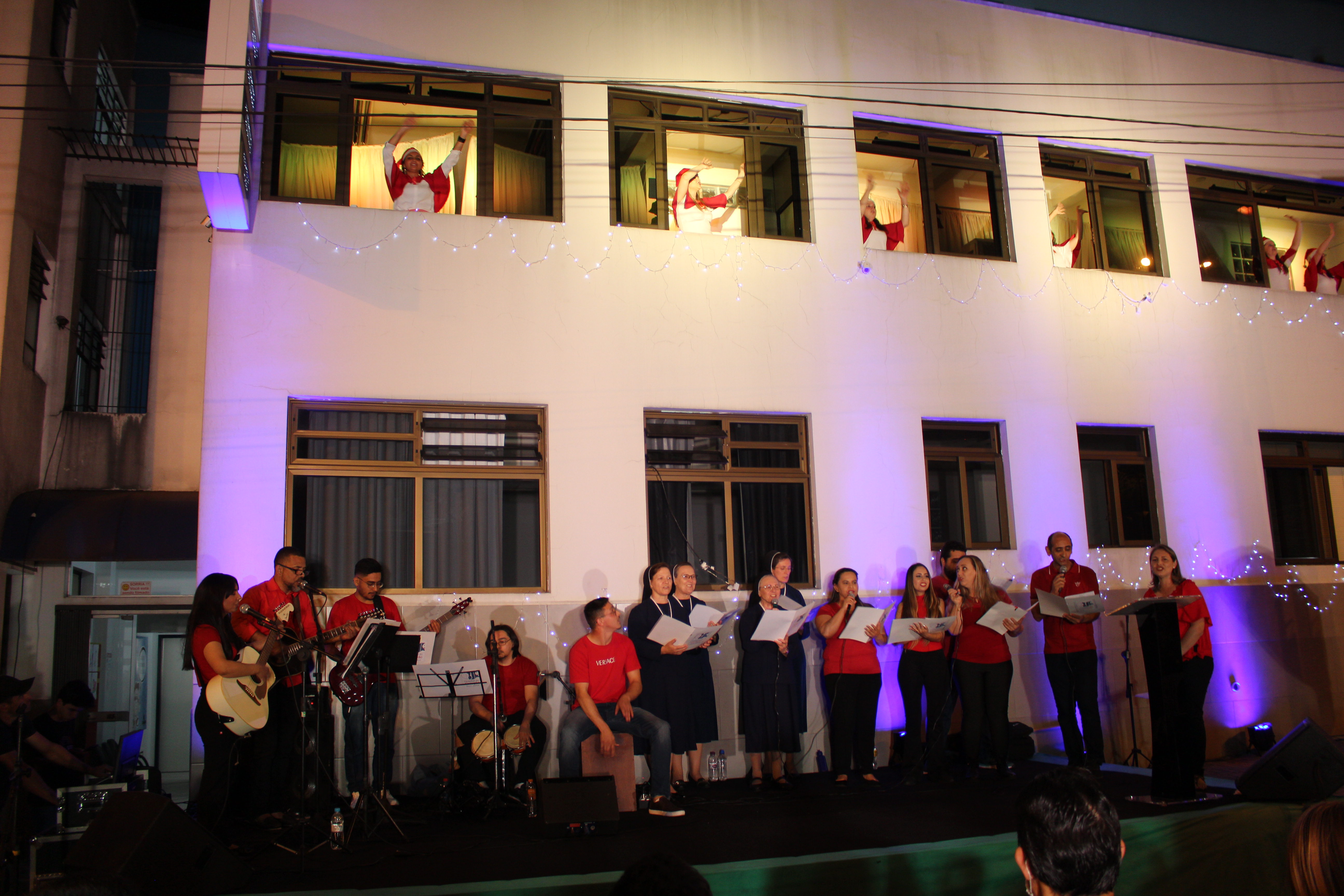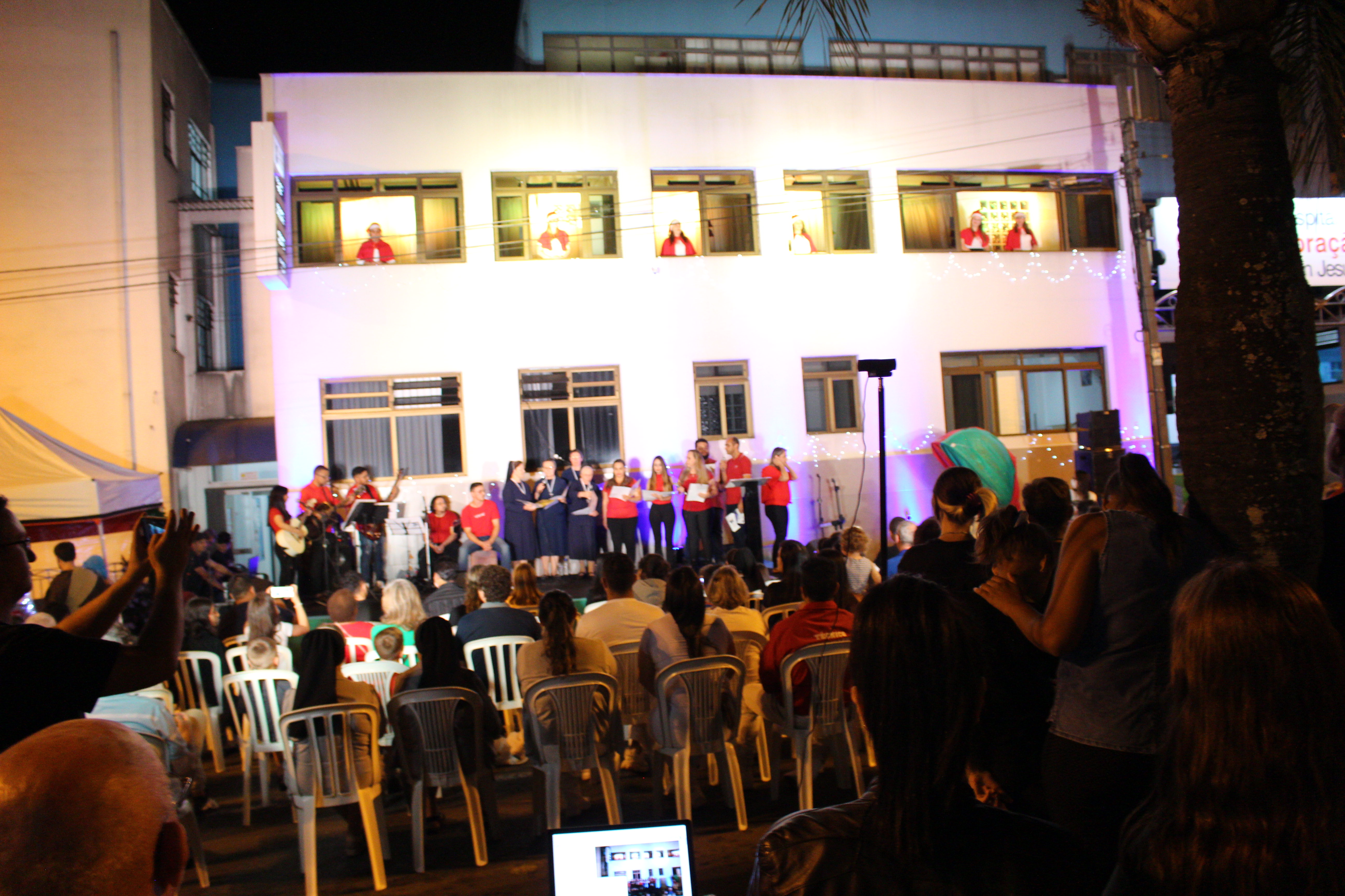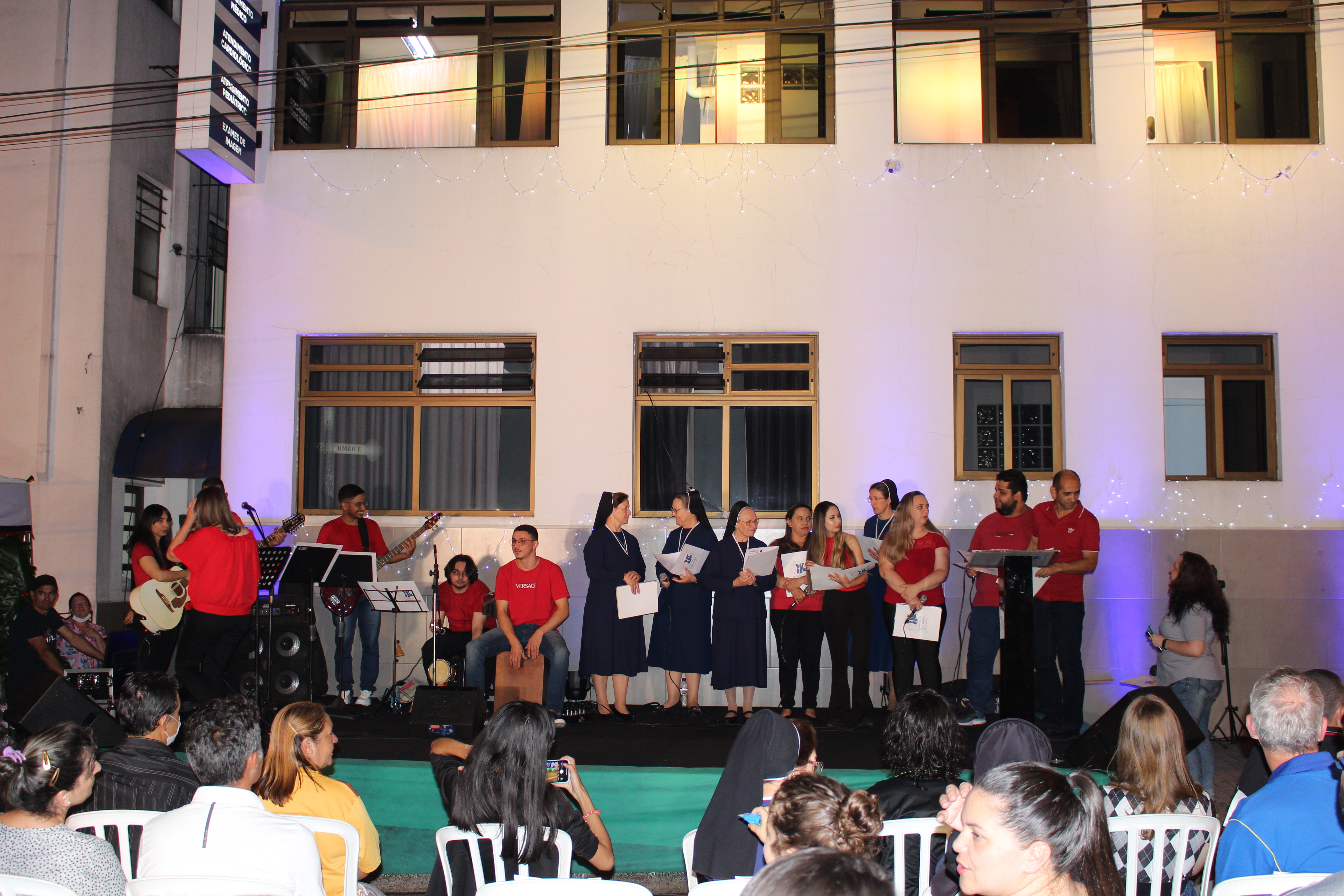 A apresentação Vozes do Coração foi realizada dia 15 de dezembro, com início às 20h, os colaboradores estavam na fachada principal do HCor Bom Jesus.