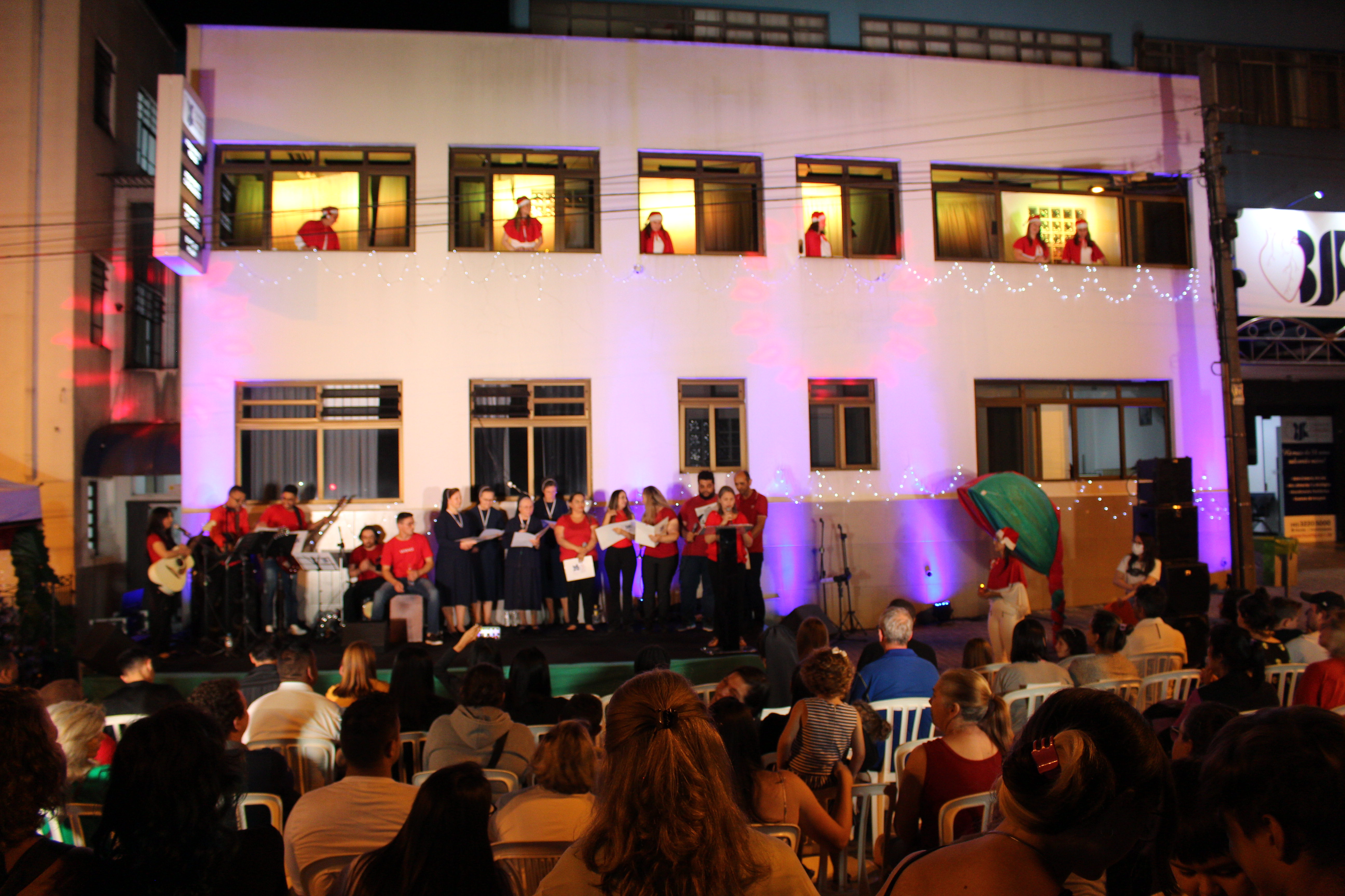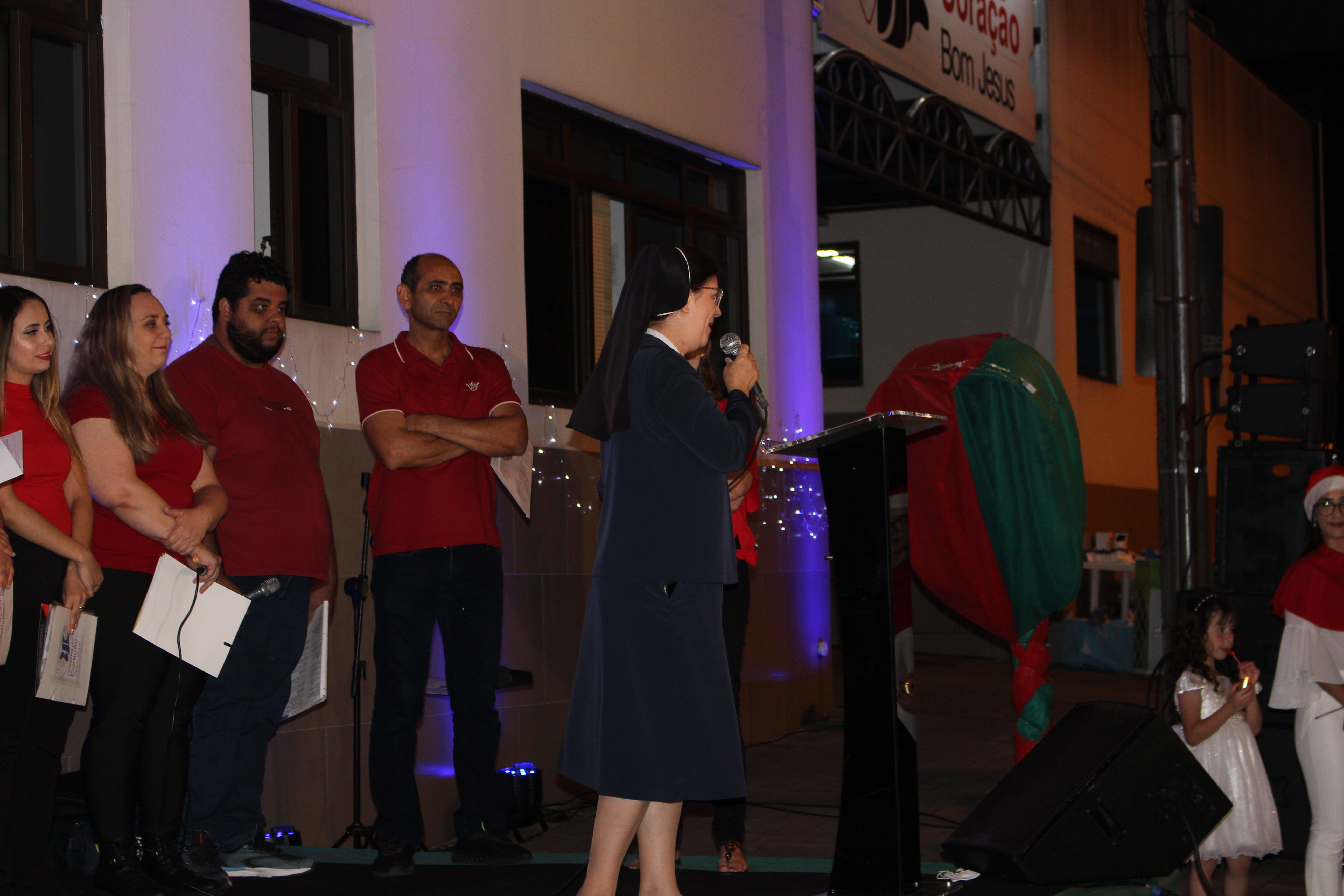 Além das apresentações musicais, tivemos a visita do Papai Noel para as crianças, o Presépio Vivo e contamos com a presença da Madre Deonisia Diadio, da Congregação Serva de Maria Imaculada.